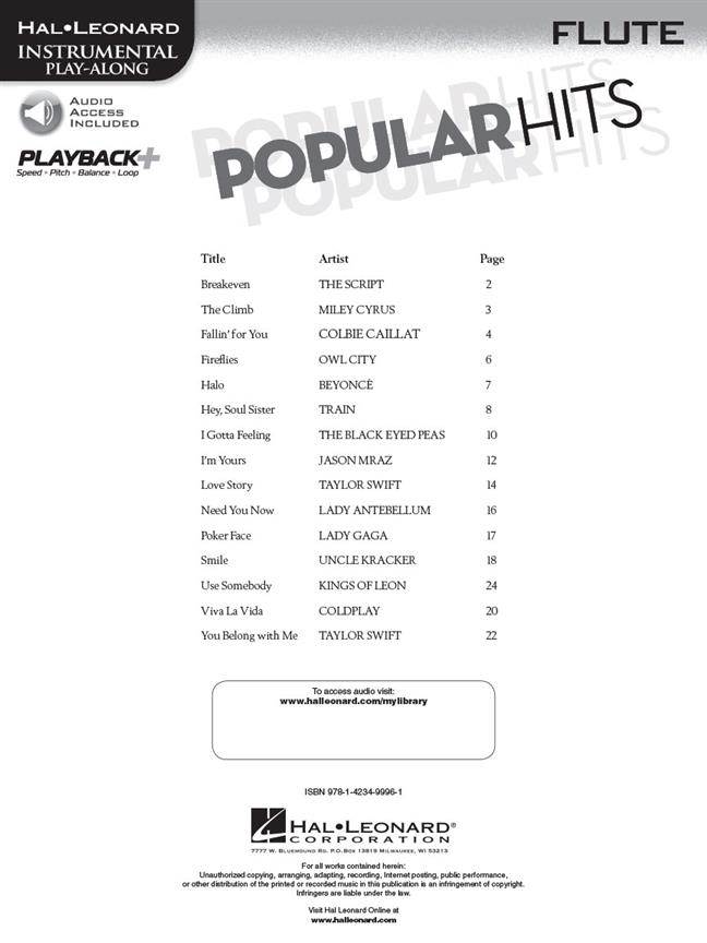 POPULAR HITS PLAY ALONG FLUTE + AUDIO ACCESS iz kategorije zabavna glasba sodi med odlične flavta.Fireflies Smile The Climb Halo Love Story I'm Yours Viva La Vida Breakeven You Be ...