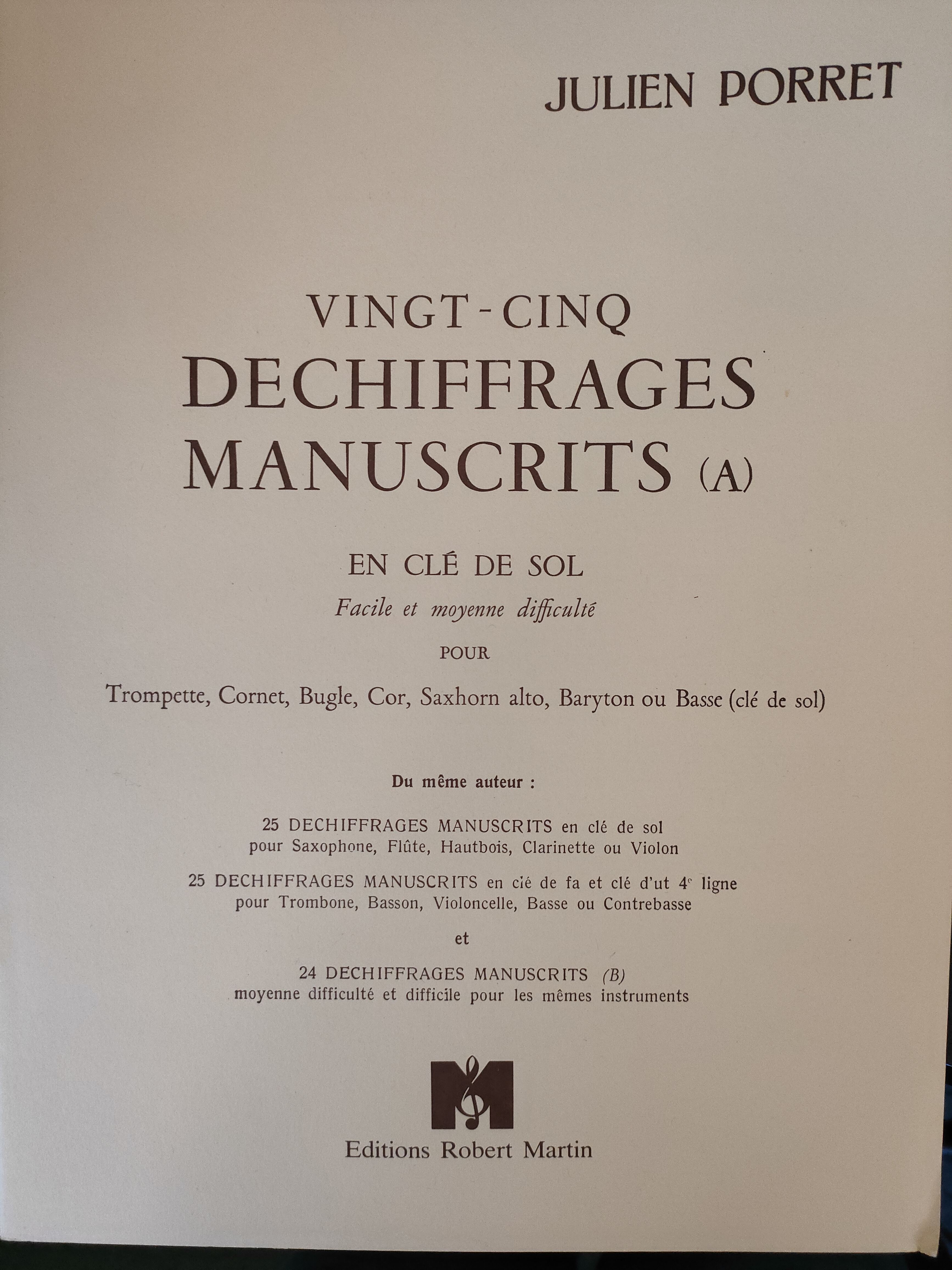 PORRET:VINGT-CINQ DECHIFFRAGES MANUSCRIT iz kategorije etude sodi med odlične trobenta.