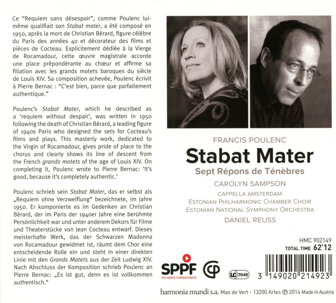 POULENC:STABAT MATER/DANIEL REUSS iz kategorije klasika in slovenska narodna sodi med odlične cd.
