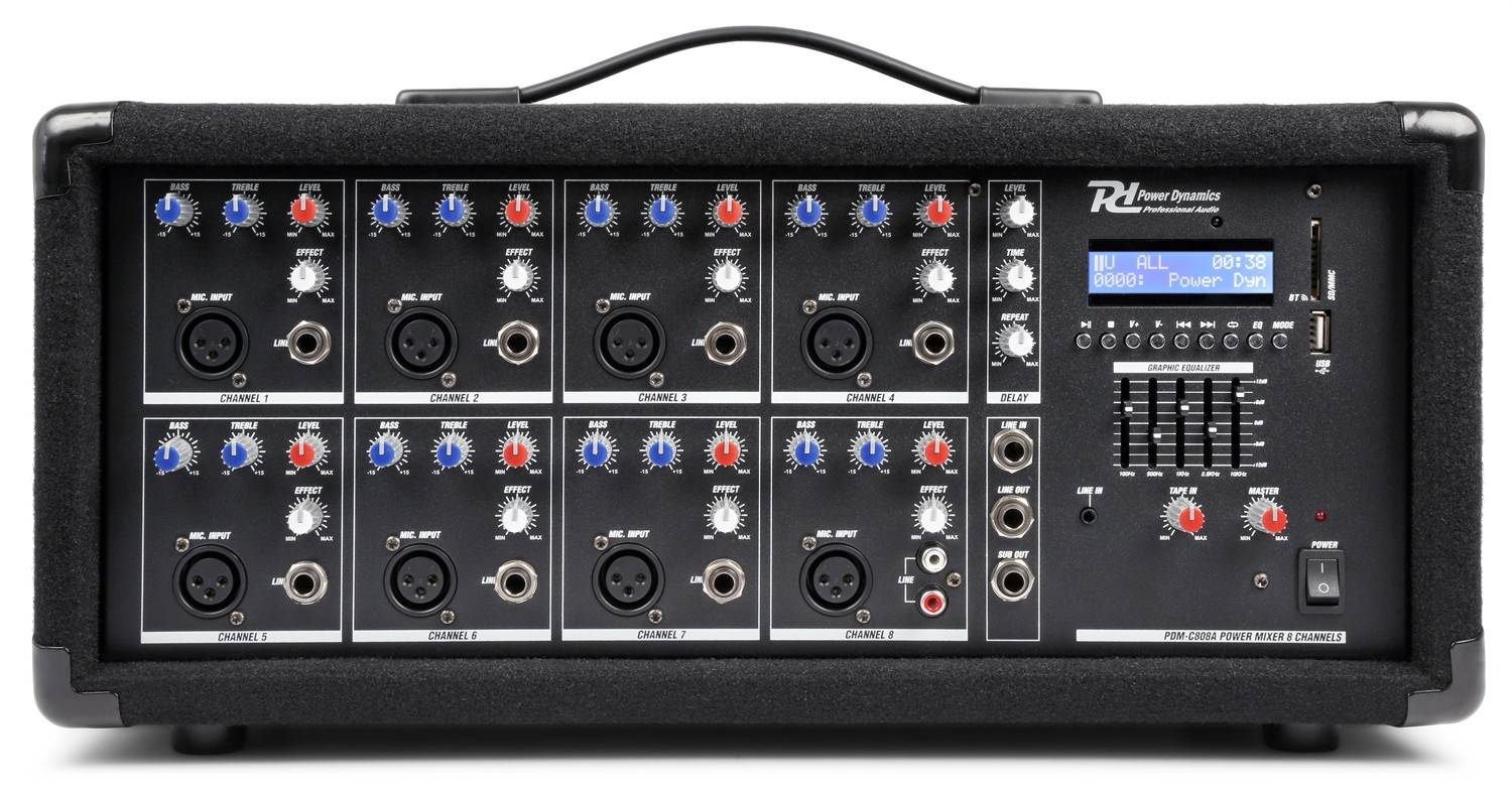 POWER DYNAMICS AKTIVNA MEŠALNA MIZA PDM-C805A 171.159 iz kategorije Mešalne mize z ojačevalnikom sodi med odlične Mešalne mize.Playback options BT Streaming, SD-Card, USB Input Co ...