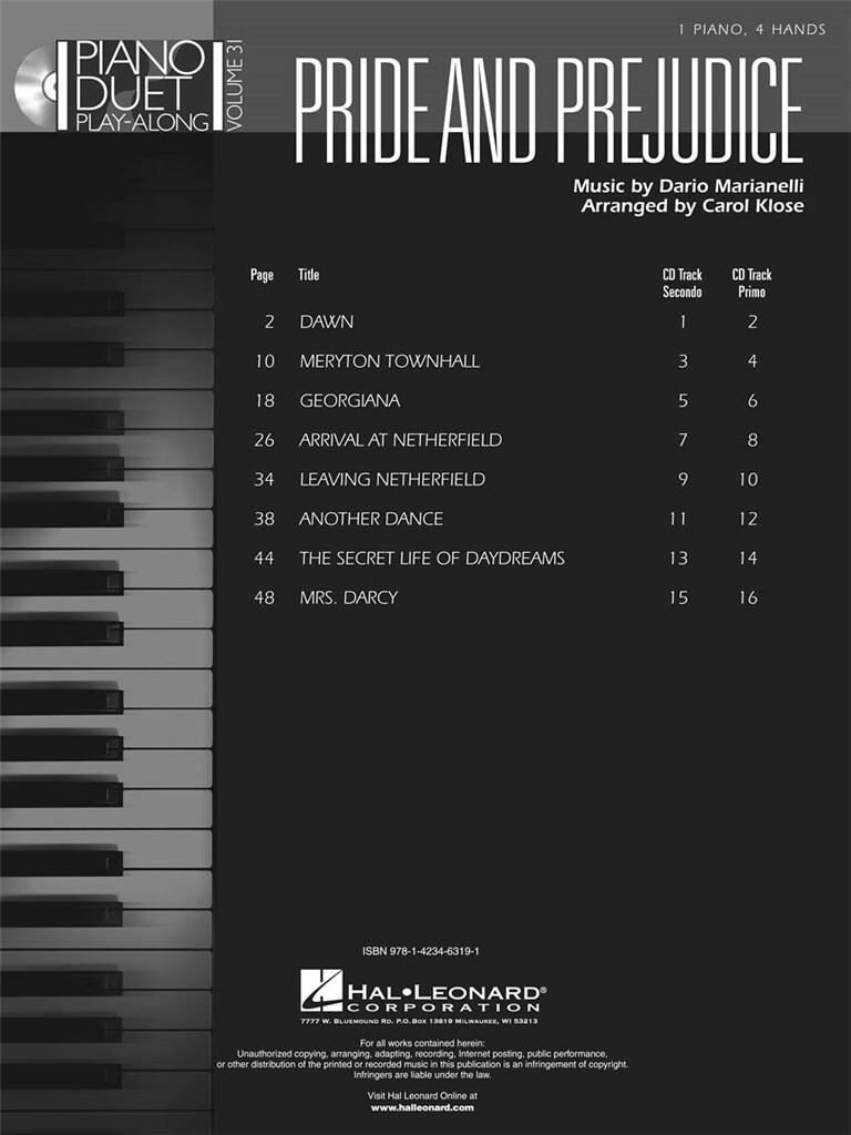 PRIDE AND PREJUDICE PLAY ALONG + CD 4 HANDS iz kategorije klavir 4 ročno sodi med odlične klavir.HL00290578 1. Dawn 2. Another Dance 3. Arrival At Netherfield 4. Georgiana 5. Leav ...