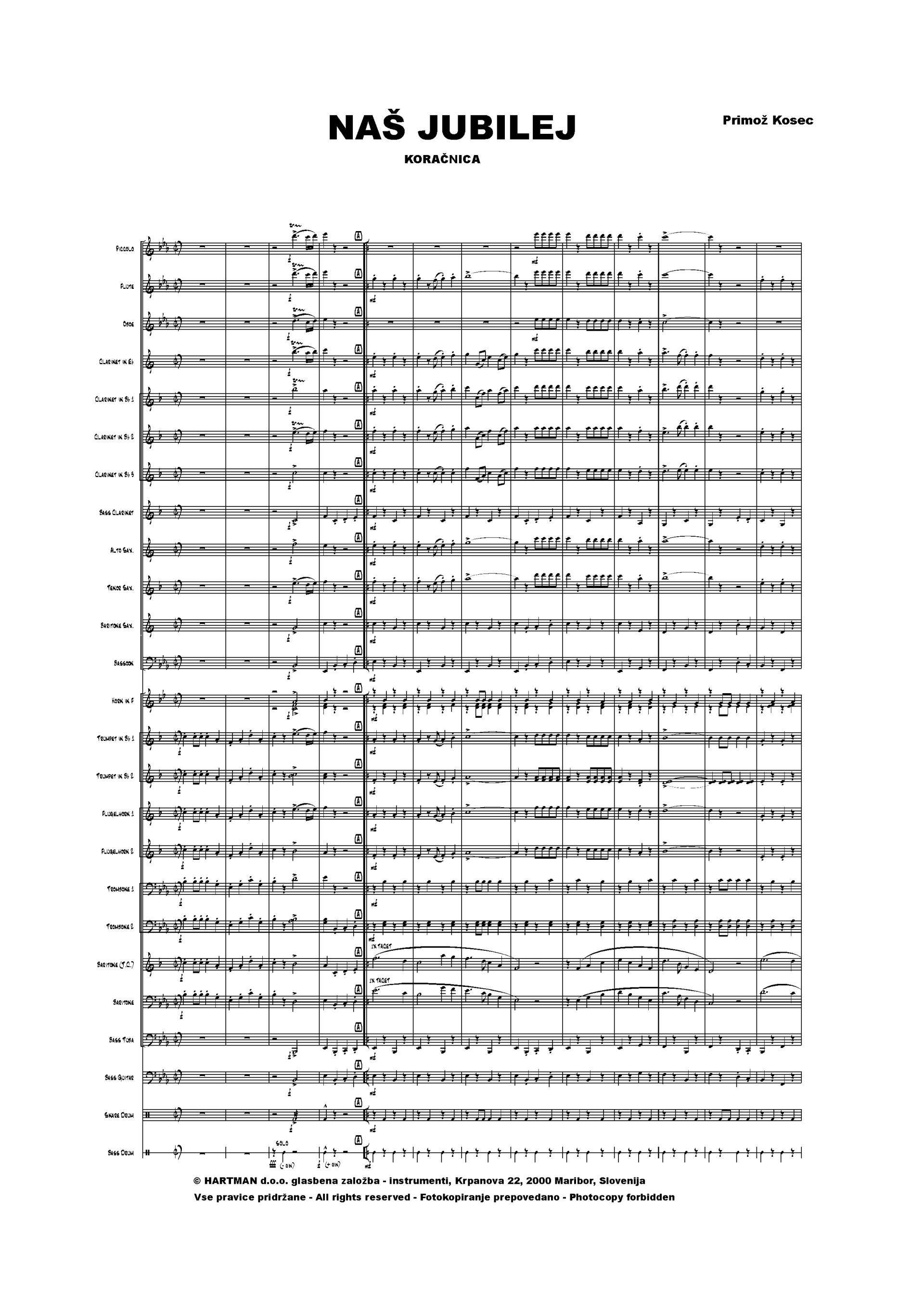 PRIMOŽ KOSEC: NAŠ JUBILEJ iz kategorije koračnice sodi med odlične Pihalni orkester.Še ena nova koračnica, ki je izšla v zbirki NAJ SLOVENSKA KORAČNICA. Koračnica ima klasično obli ...
