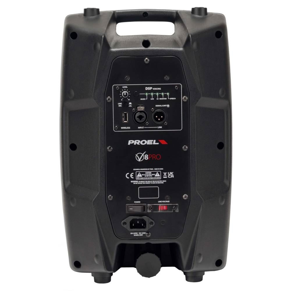 Serija V PRO je ultimativni razvoj priznane serije V PROEL aktivnih zvočnikov. V PRO ima zdaj popolnoma nov predojačevalni del, ki vključuje napredno obdelavo z visokozmogljivim DSP procesorjem, za zelo gladek odziv in zvok visoke ločljivosti. Možnost izbire 5 različnih prednastavitev izenačevalnika omogoča prilagoditev odziva sistema različnim aplikacijam z dotikom prstov. Ti ultra prenosni zvočniki v skrbno zasnovanih in lahkih ohišjih združujejo najjasnejši in najbolj natančen zvok PROEL s tehnologijo ojačevalnika razreda D in stikalnim napajalnikom, kar ponuja nepremagljivo rešitev PA v svojem cenovnem razredu. Štirje modeli, V8PRO, V10PRO, V12PRO in V15PRO, imajo nov izjemno učinkovit ojačevalni modul, ki lahko pretvornikom dostavi 600 W robustne moči. Zahvaljujoč uporabi tehnologije SMPS je ta moč na voljo v ultra lahkem ohišju, zaradi česar je V PRO najbolj prenosni PROEL zvočnik doslej.