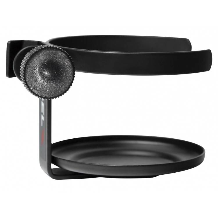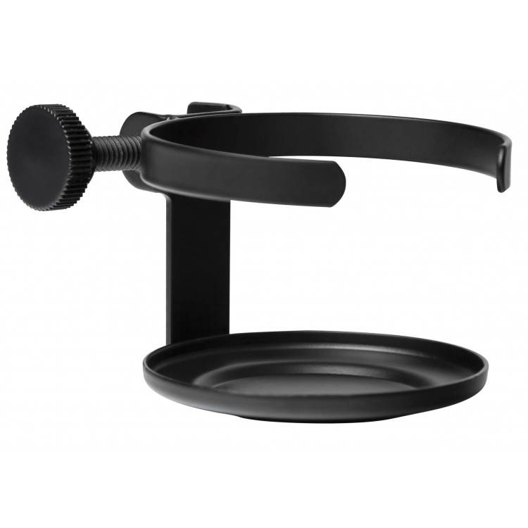 Universal holder for cans, glasses and bottles. Provided with universal clamp that allow it to be attached to microphone stands, music stands and instrument stands. Available in scratch-resistant matt black finish.