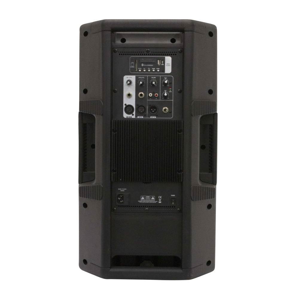 12'' aktivni plastični zvočnik. - Multimedijski predvajalnik: USB pogon, SD kartica, Bluetooth naprava, IR nadzor. - Nizkotonec 12''. - Driver 1'' VC 34 mm. - Linijski IZHOD XLR + 1” JACK. - Linijski vhod XLR + 2 x RCA. - Mikrofon V XLR + 1” JACK. - Največja moč 800 W. - Frekvenčni razpon 48hz-20khz. - spl 129 dB