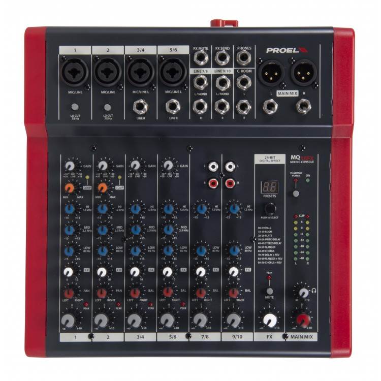 PROEL MIKSER MQ10FX iz kategorije Analogne mešalne mize sodi med odlične Mešalne mize.PROEL MIKSER MQ10FX Compact 10-input 2-bus mixer with effect 2 MONO MIC/LINE inputs, ...