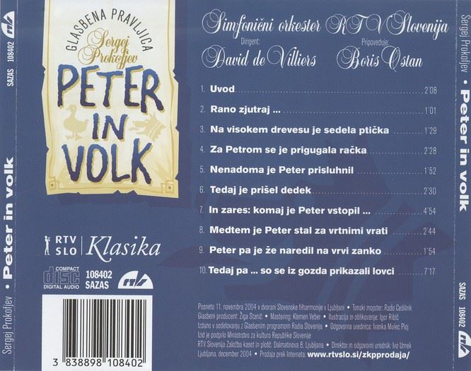 PROKOFJEV:PETER IN VOLK - GLASBENA PRAVLJICA/OSTAN BORIS iz kategorije otroški sodi med odlične cd.Simfonični orkester RTV Slovenija Dirigent: David deVilliers Pripoveduje: Boris ...
