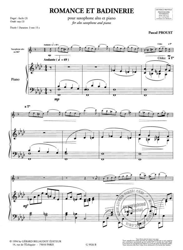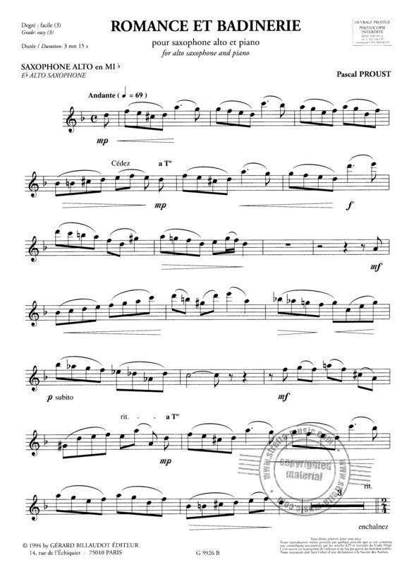 PROUST:ROMANCE ET BADINERIE POUR SAX ALT iz kategorije skladbe sodi med odlične saksofon.