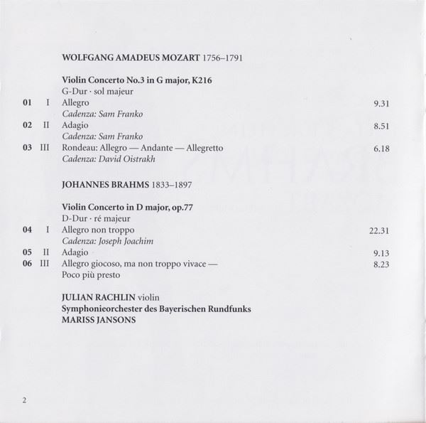 BRAHMS/MOZART:VIOLIN CONCERTO/RACHLIN iz kategorije klasika in slovenska narodna sodi med odlične cd.