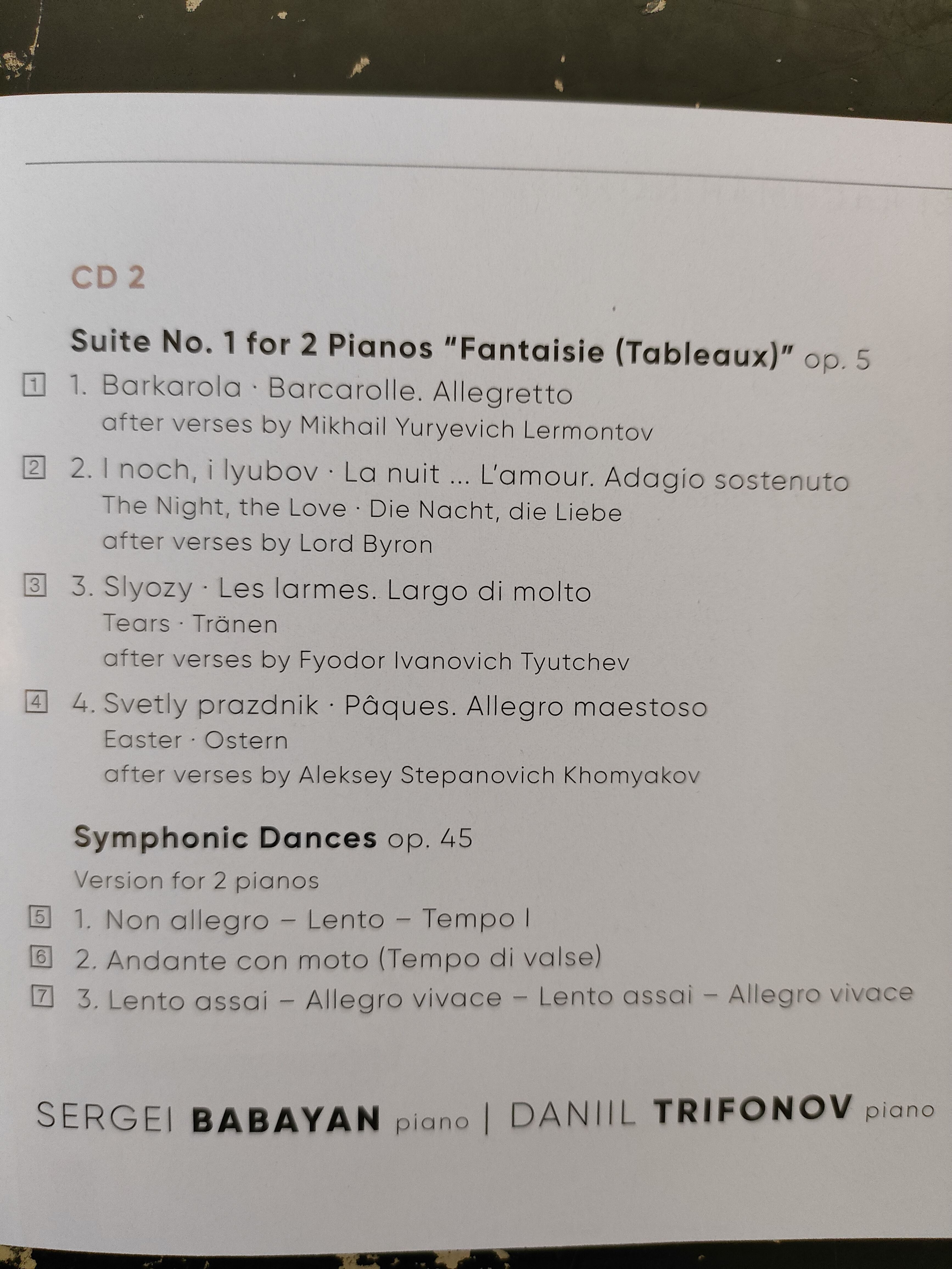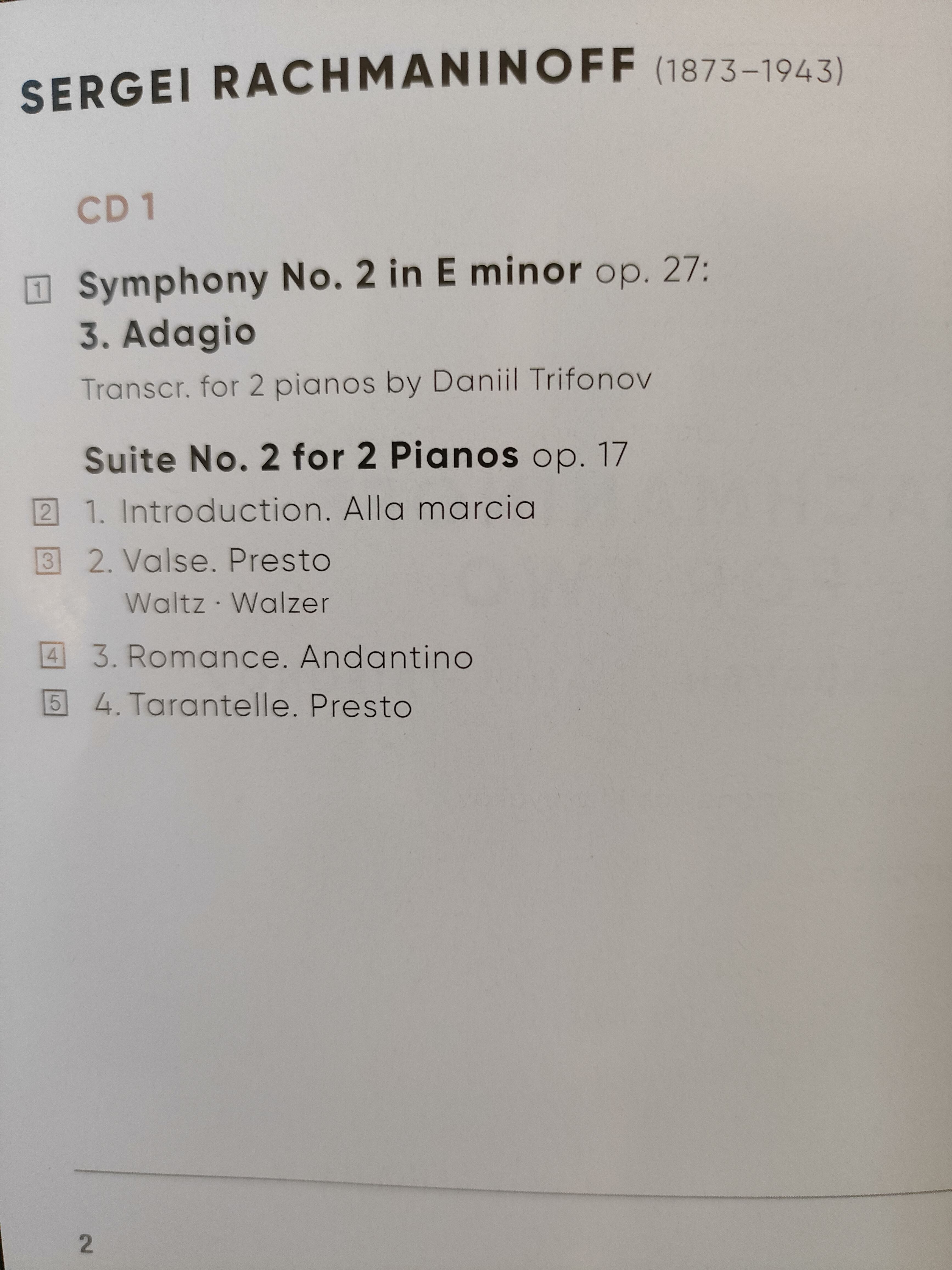 RACHMANINOFF FOR TWO/BABYAN/TRIFONOV 2CD iz kategorije klasika in slovenska narodna sodi med odlične cd.
