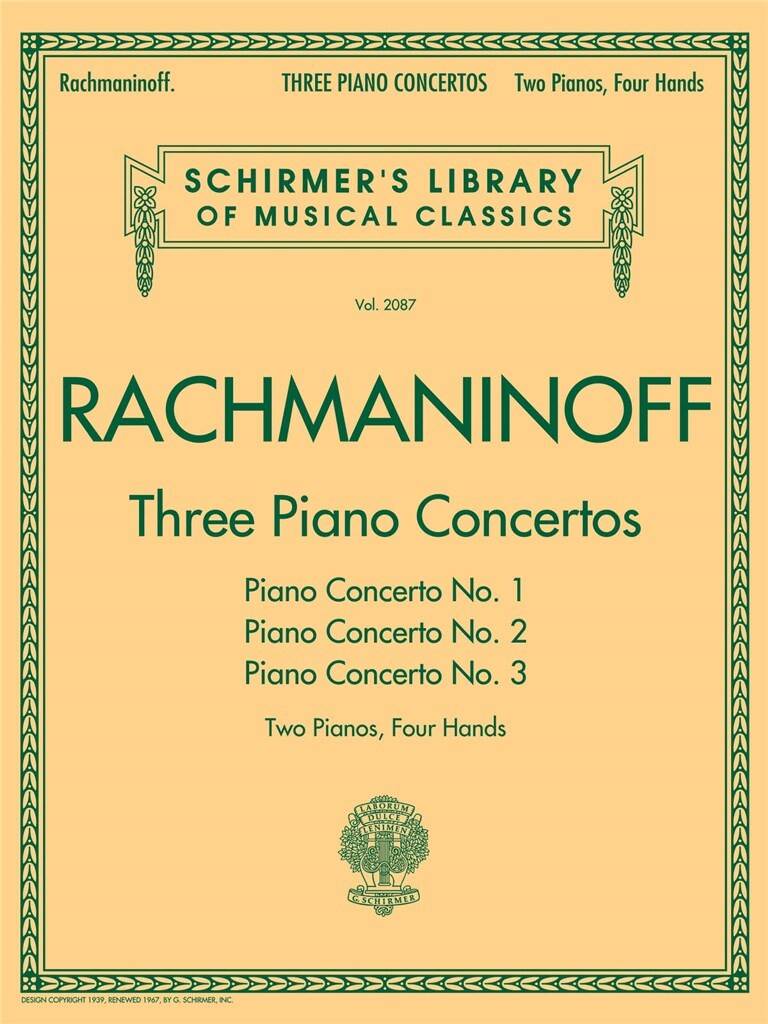 RACHMANINOFF:THREE PIANO CONCERTOS 1,2 & 3 TWO PIANOS FOUR HANDS iz kategorije skladbe, sodi med odlične klavir.