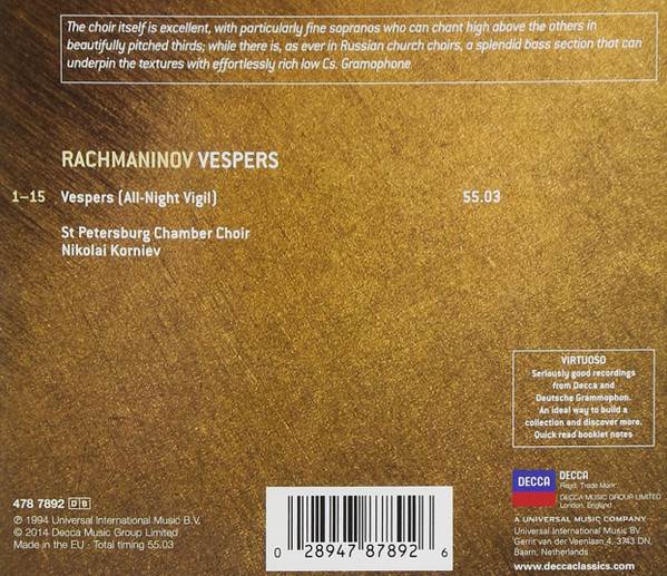 RACHMANINOV:VESPERS/ST.PETERSBURG CHOIR