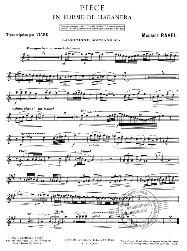 RAVEL M.:PIECE EN FORME DE HABANERA iz kategorije skladbe sodi med odlične saksofon.
