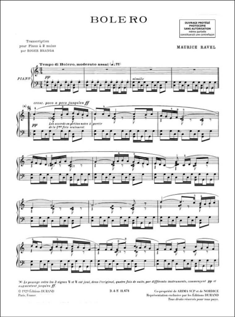 RAVEL:BOLERO POUR PIANO iz kategorije skladbe, sodi med odlične klavir.