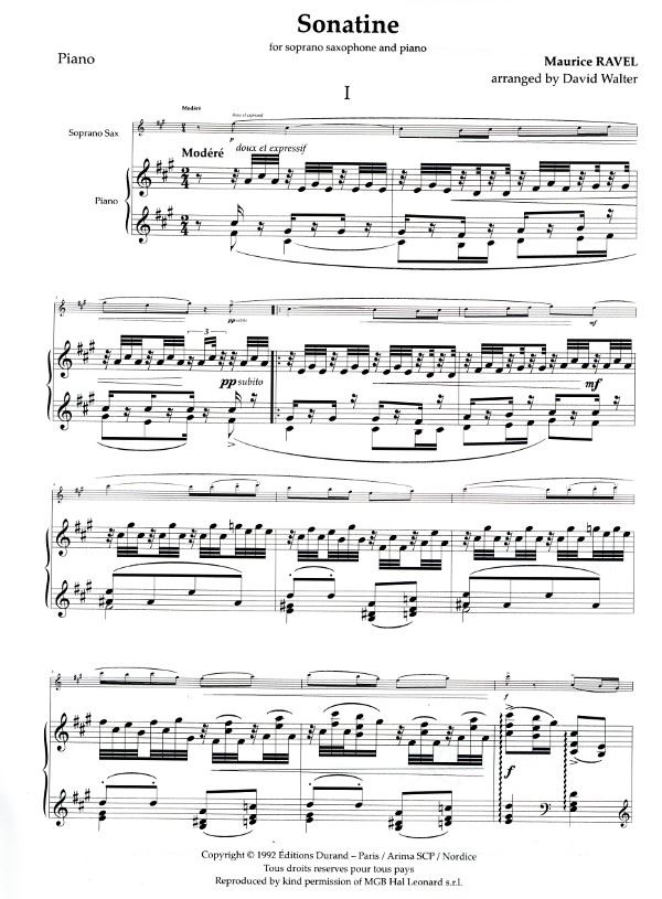 RAVEL/WALTER:SONATINE FOR PIANO AND SOPRANO SAXOPHONE iz kategorije skladbe sodi med odlične saksofon.