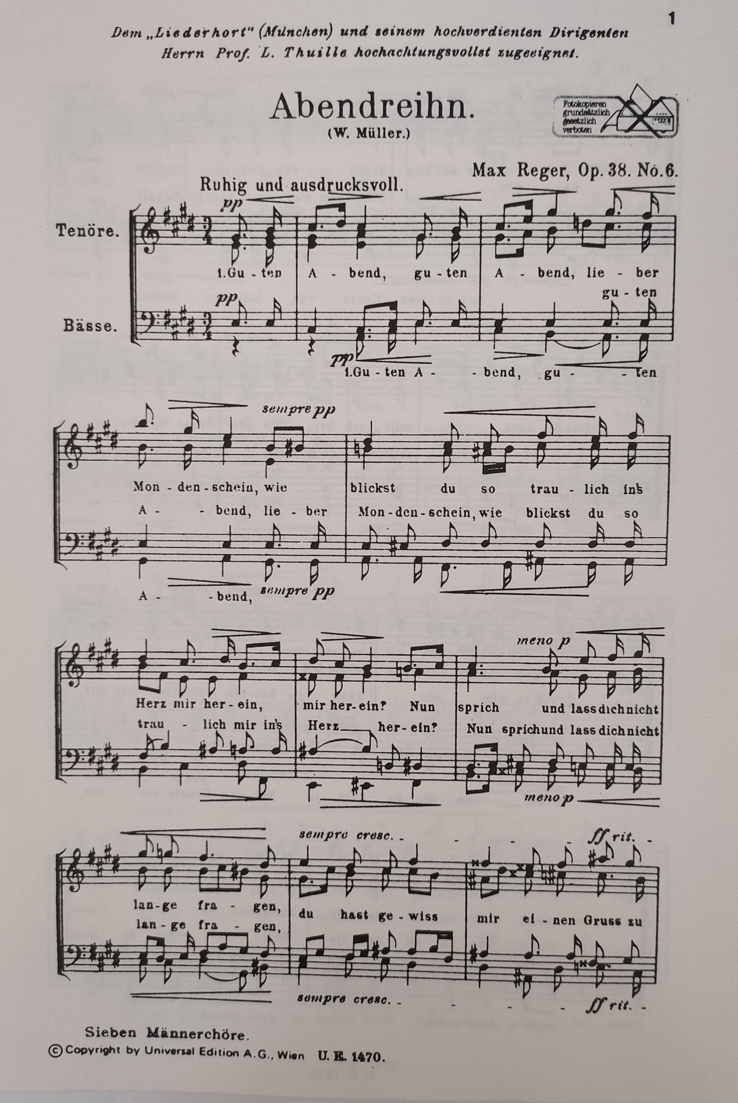 REGER:ABENDREIHN OP.38/6 TTBB iz kategorije zbori sodi med odlične vokal.