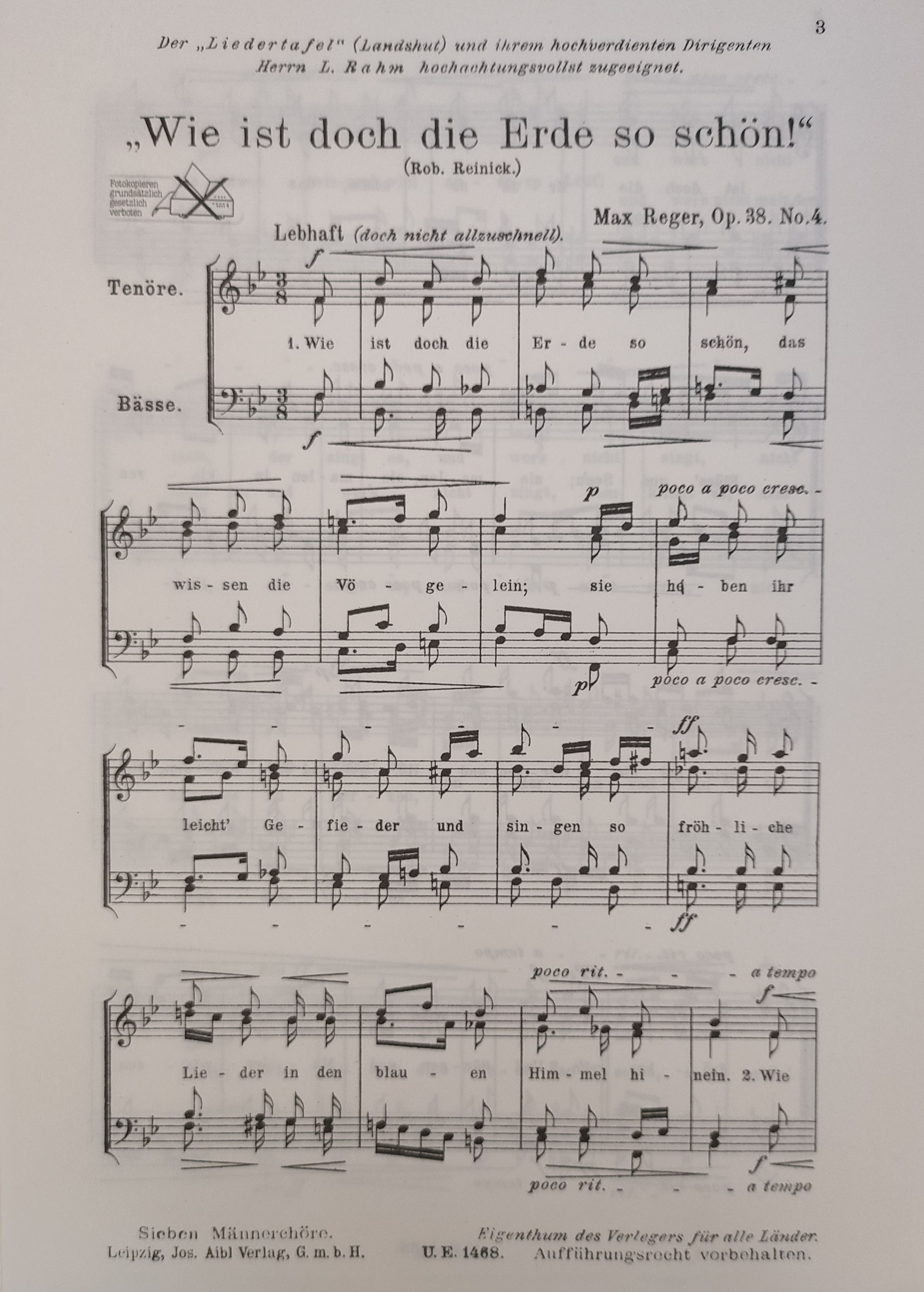 REGER:WIE IST DOCH DIE ERDE SO SCHON! OP.38/4 TTBB