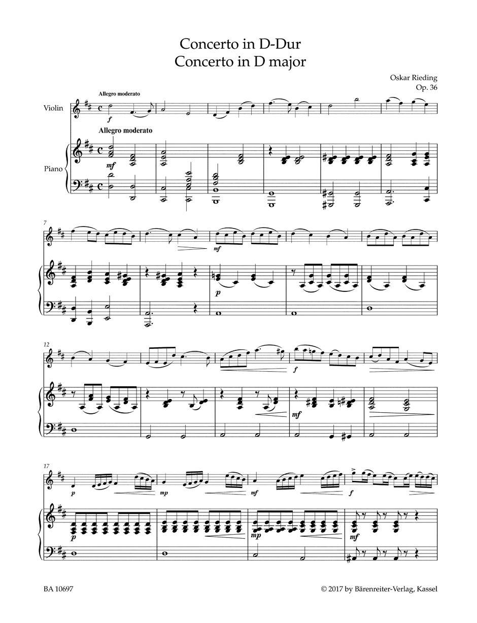 Oskar Rieding (1840–1918) je vsem mladim violinistom znan po svojih lahko igranih koncertih za violino in klavir. Med njimi so na prvem mestu dela od 34 do 36. V paru z spevljivimi melodijami so začetne težave, kot so osmi arpegio, šestnajsti tek ali kromatični elementi, dobro odmerjene med delom.