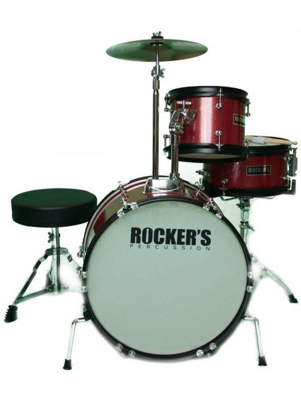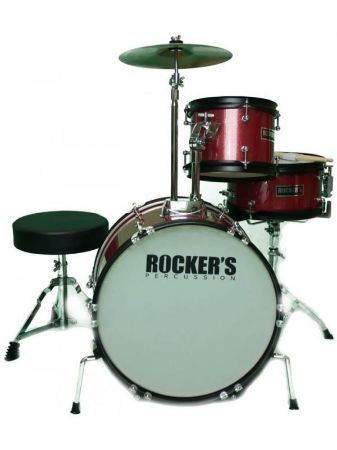 ROCKERS JBJ1049D; Začetniški otroški komplet, ki vključuje vse, kar otroci potrebujejo, da jih uvedemo v čudoviti svet bobnov. Set je sestavljen iz 3 bobnov, bobnarskega stola, činele, bas pedala in stojala.