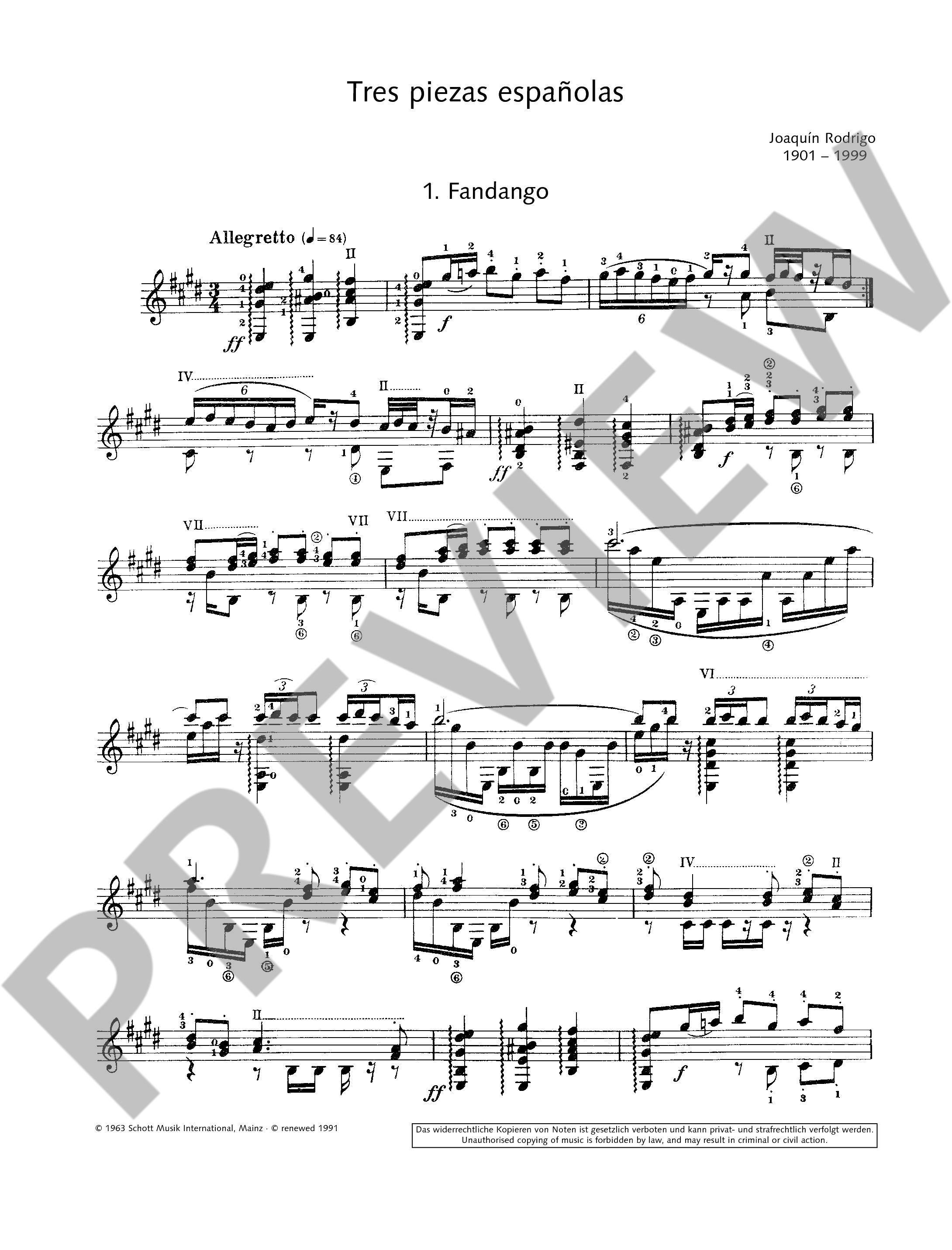 RODRIGO:SPANISH DREAMS FOR GUITAR iz kategorije skladbe sodi med odlične klasična kitara.GA542 Tres piezas espanolas (a Andrés Segovia) (1954): Fandango Passacaglia Zapateado . T ...
