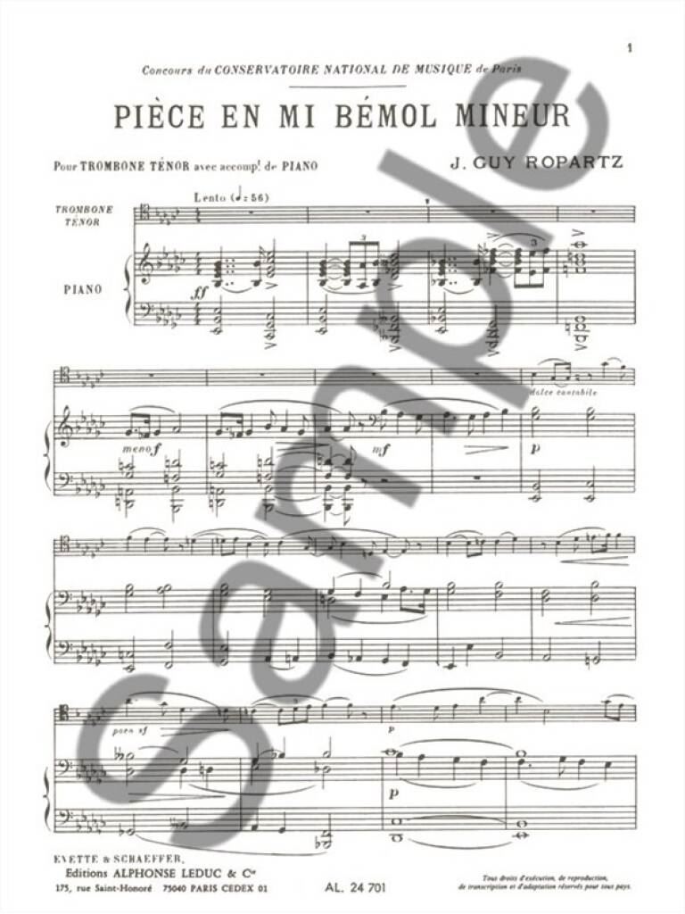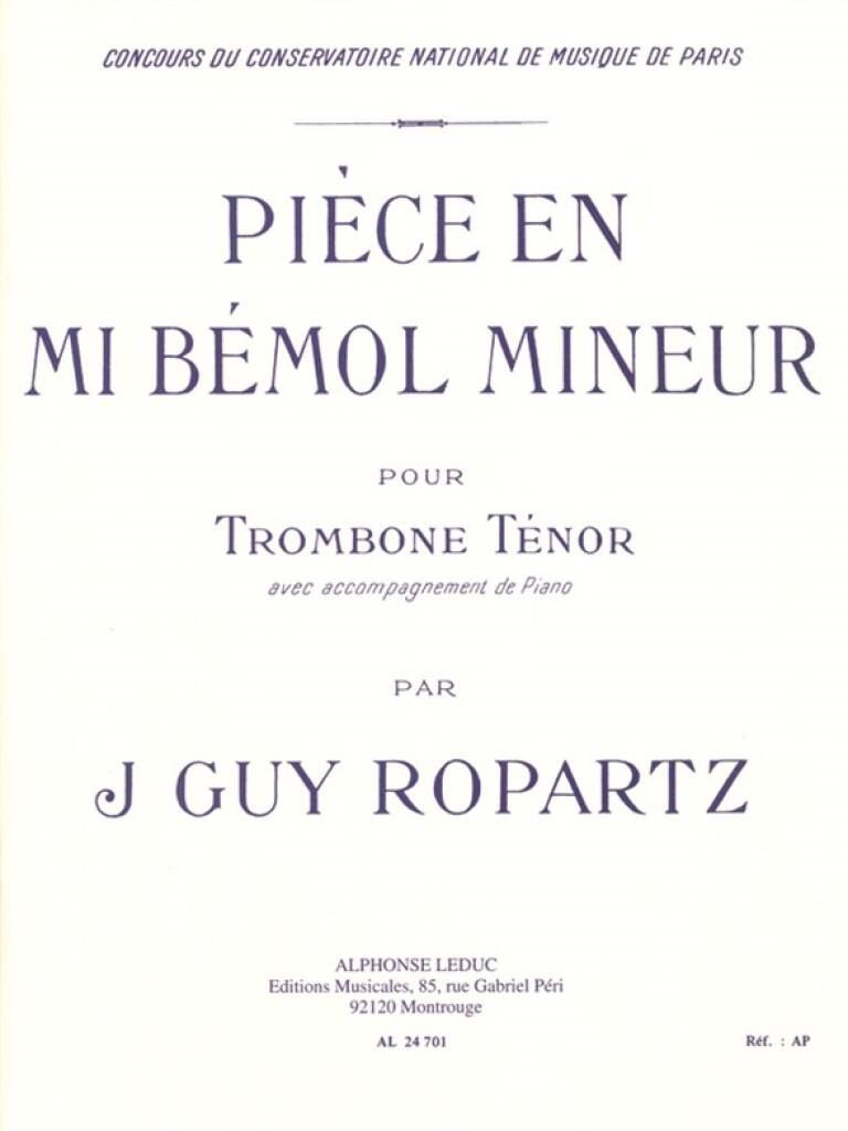 ROPARTZ:PIECE EN MI BEMOL MINEUR TROMBONE TENOR & PIANO iz kategorije skladbe sodi med odlične pozavna.