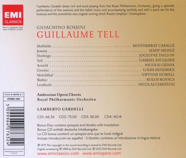 ROSSINI:GUILLAUME TELL/CABALLE/GEDDA/MESPLE/GARDELLI 4CD iz kategorije klasika in slovenska narodna sodi med odlične cd.