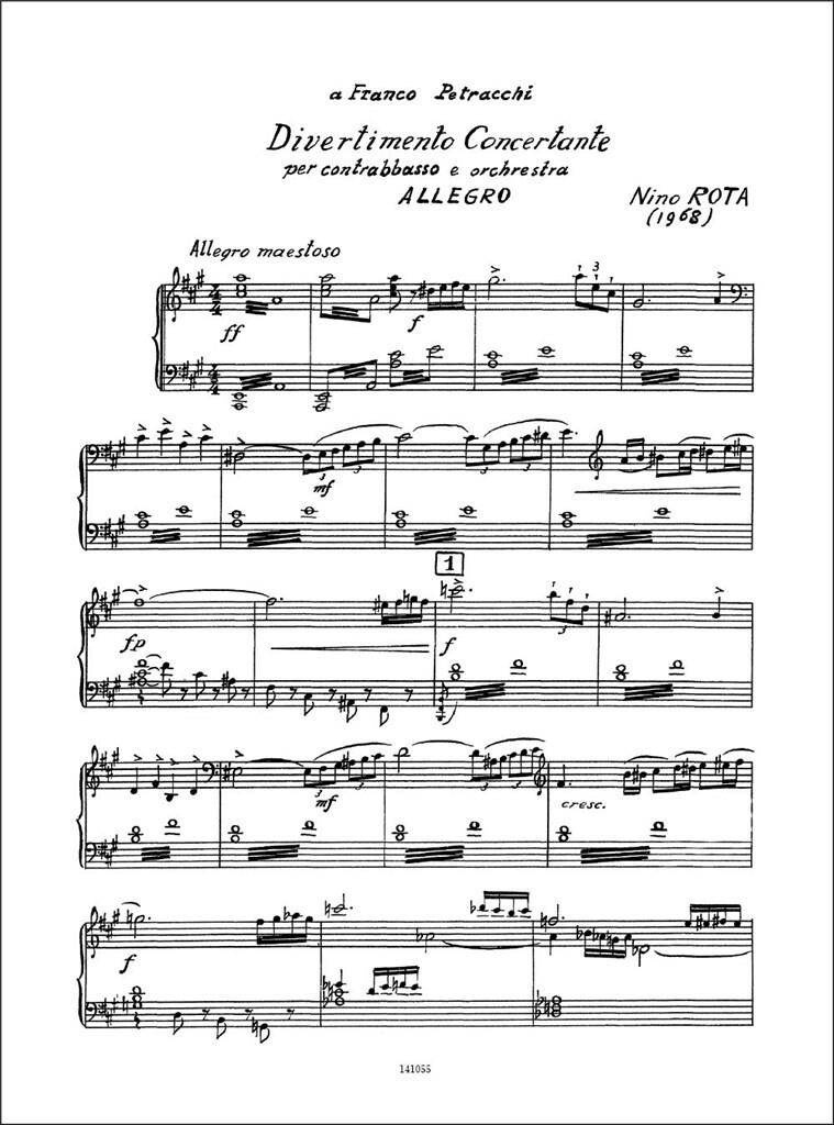 ROTA:DIVERTIMENTO CONCERTANTE PER CONTRABBASSO E PIANOFORTE iz kategorije skladbe sodi med odlične kontrabas.
