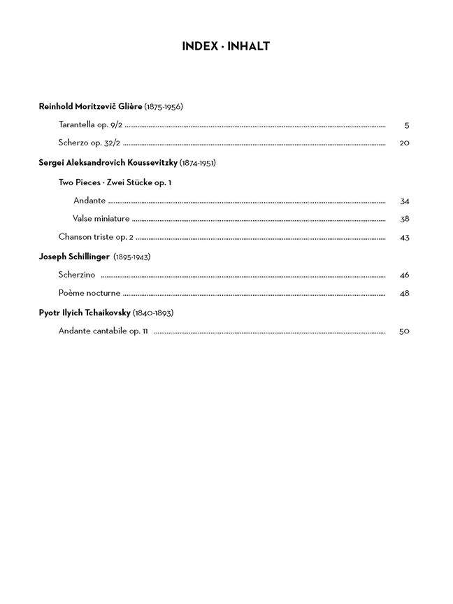 RUSSIAN DOUBLE BASS ALBUM DOUBLE BASS NAD PIANO iz kategorije skladbe sodi med odlične kontrabas.Tarantella op. 9/2 Scherzo op.32/2 Two Pieces - Zwei Stücke op. 1: Andante Two Piec ...