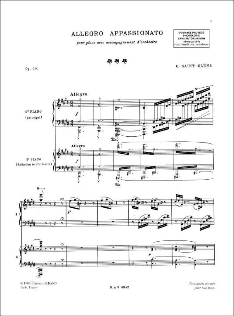 SAINT-SAENS:ALLEGRO APPASSIONATO OP.70 POUR PIANO iz kategorije skladbe, sodi med odlične klavir.
