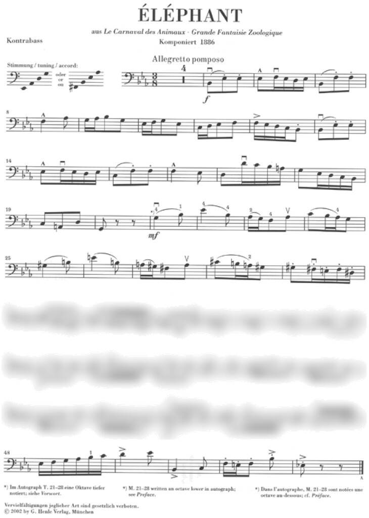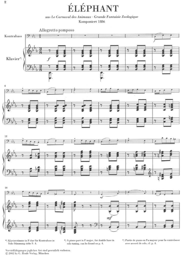 SAINT-SAENS:ELEPHANT FROM THE CARNIVAL OF THE ANIMALS FOR DOUBLE BASS AND PIANO iz kategorije skladbe sodi med odlične kontrabas.