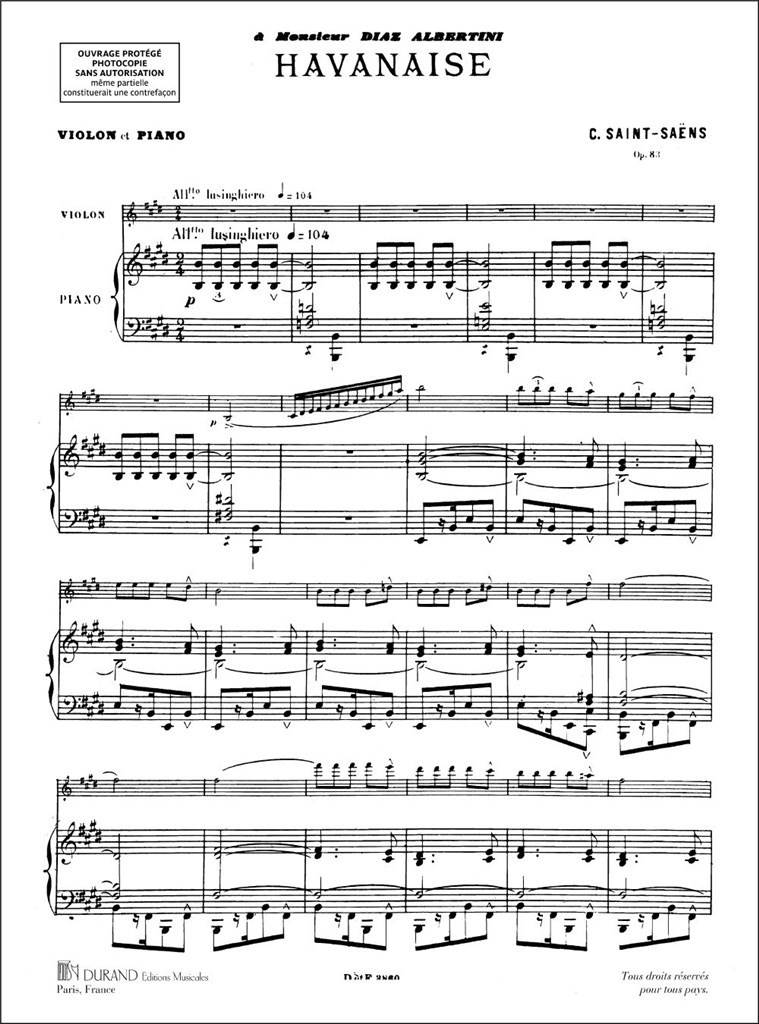 SAINT-SAENS:HAVANAISE OP.83 POUR VIOLON ET PIANO iz kategorije skladbe sodi med odlične violina.
