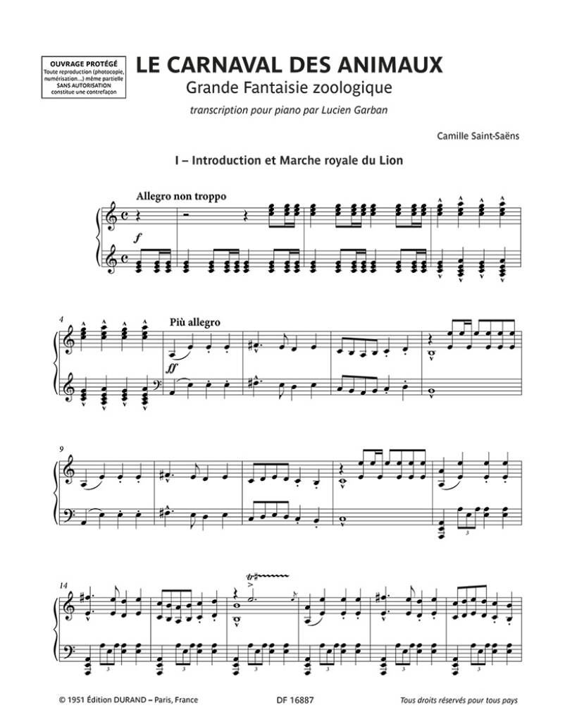 SAINT-SAENS:LE CARNAVAL DES ANIMAUX FOR PIANO iz kategorije skladbe, sodi med odlične klavir.