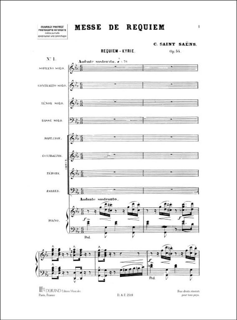 SAINT-SAENS:MESSE DE REQUIEM OP.54 POUR CHANT & PIANO iz kategorije skladbe sodi med odlične vokal.