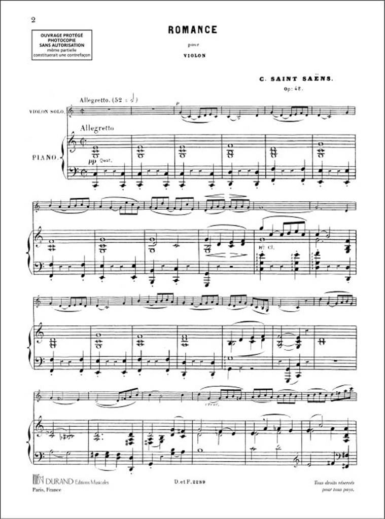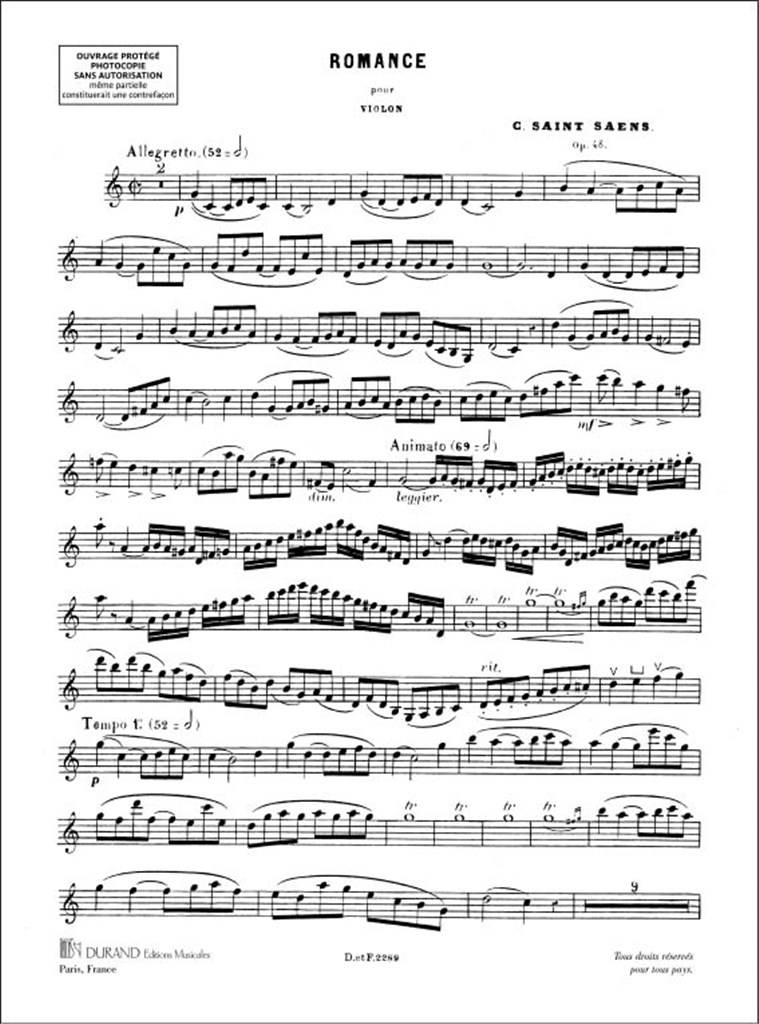 SAINT-SAENS:ROMANCE OP.48 POUR VIOLON ET PIANO iz kategorije skladbe sodi med odlične violina.