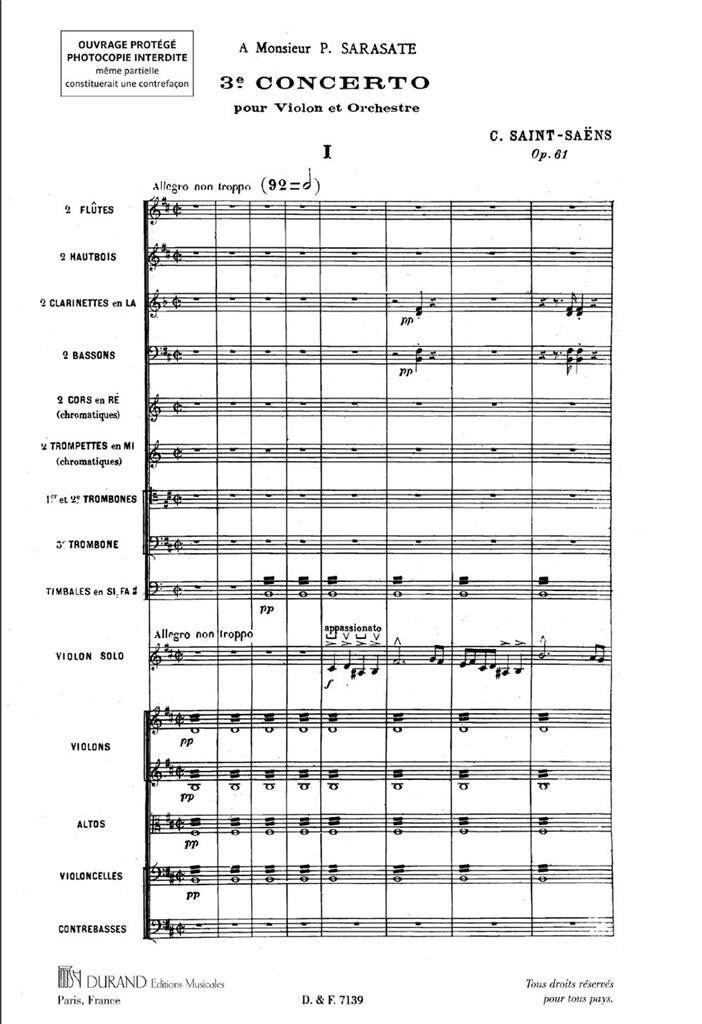 SAINT-SAENS:TROISIEME CONCERTO OP.61 POUR VIOLON & ORCHESTRE SCORE iz kategorije partiture sodi med odlične Notna literatura.