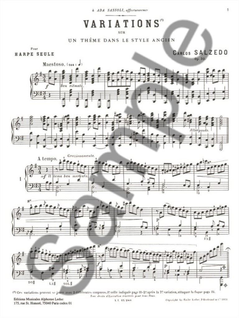 SALZEDO:TROIS MORCEAUX NO.3 VARIATION UN THEME DANS LE STYLE ANCIEN HARP iz kategorije skladbe sodi med odlične harfa.
