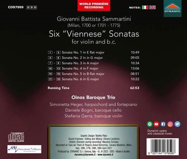 SAMMARTINI:SIX VIENNESE SONATAS FOR VIOLIN AND B.C.