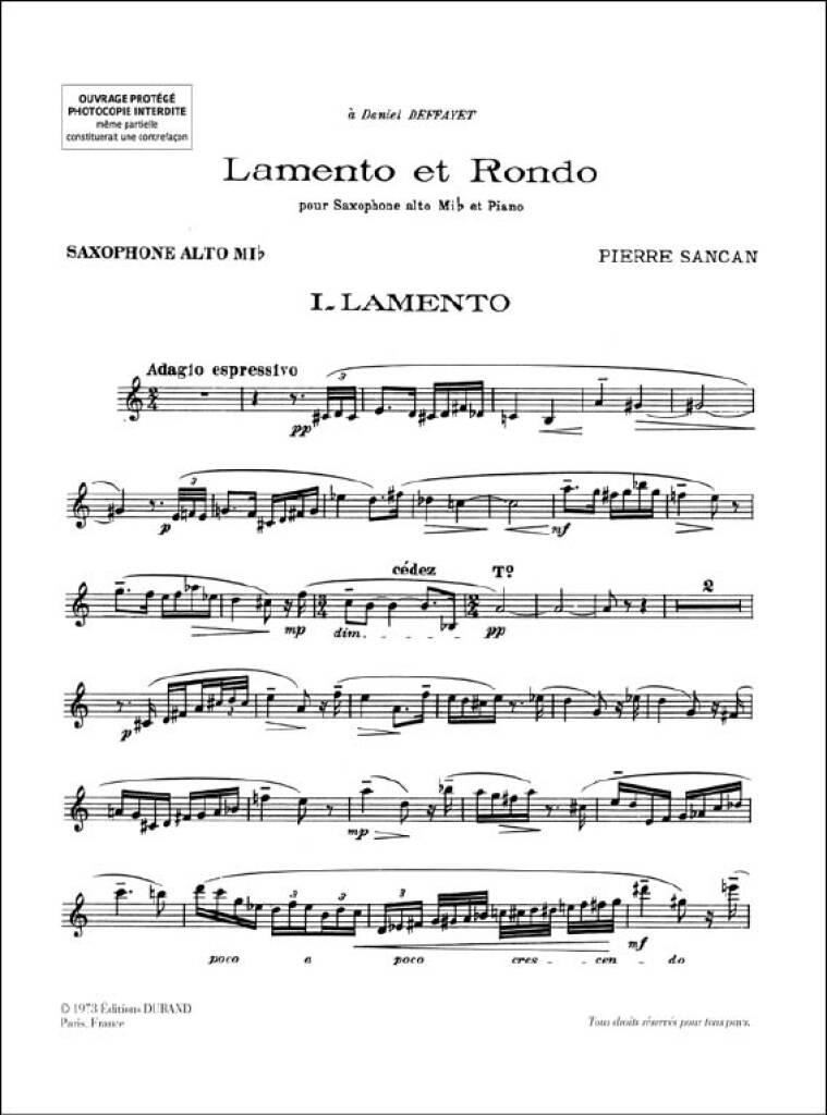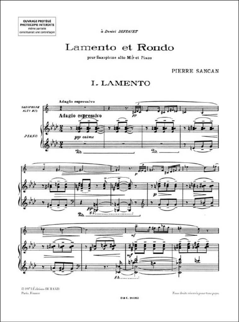 SANCAN P:LAMENTO ET RONDO SAXOHONE ALTO & PIANO iz kategorije skladbe sodi med odlične saksofon.