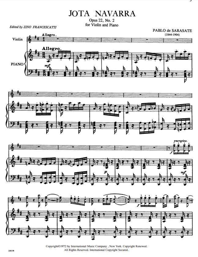 SARASATE:JOTA NAVARRA OP22 NR.2 VIOLIN & PIANO iz kategorije skladbe sodi med odlične violina.