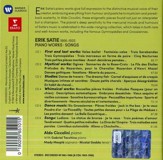 SATIE PIANO WORS/SONGS/ALDO CICCOLINI 6CD