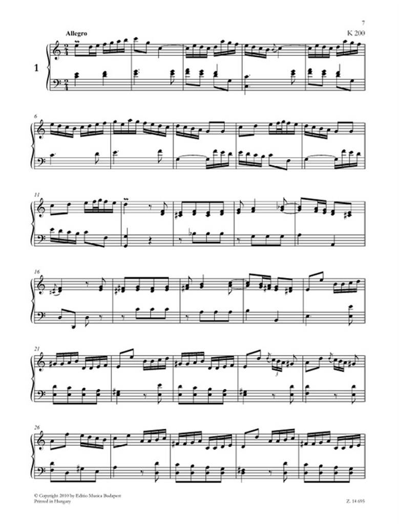 Poleg Bacha je Domenico Scarlatti drugi baročni skladatelj, katerega klaviatura deluje zelo dobro tudi na sodobnem klavirju. Urednik tega zvezka je izbral šestnajst skladb izmed 555 ohranjenih Scarlattijevih sonat za klaviature z enim stavkom. Ta kompilacija, zasnovana tako, da ponudi reprezentativen izbor, daje okus neverjetno bogatega sveta Scarlattijevih sonat glede na njihov značaj, strukturo in tehnike klaviature: vključujejo lirične Andante in močne, etide podobne, vrtinčaste Allegro, skladbe, ki jih navdihuje španska ljudska glasba. in igranje kitare ter sonate, ki predvidevajo dunajski klasični slog. Poleg skladatelja samega imata le še eno značilnost: kar zadeva njihove tehnične zahteve, noben od njih ni več kot zmerne težavnosti.