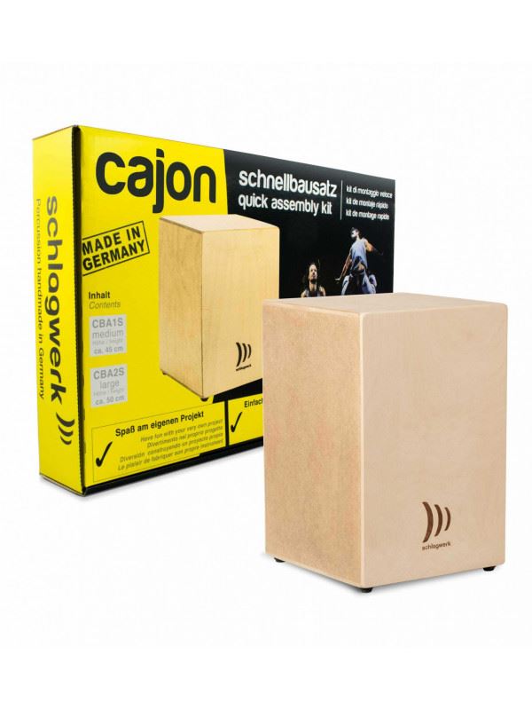 CBA10S CAJON KOMPLET za hitro in eno komplet za izdelavo Schlagwerks cajon v višini 45 cm ali 50 cm. Najuspešnejši komplet za sestavljanje cajona zadnjih let je zdaj še boljši. Zahvaljujoč na novo oblikovanim in natančno izdelanim delom ter z vključenimi napenjalnimi trakovi in hitro sušečim lepilom, zdaj traja še manj časa. Enostavno igranje za čudovite zvoke!