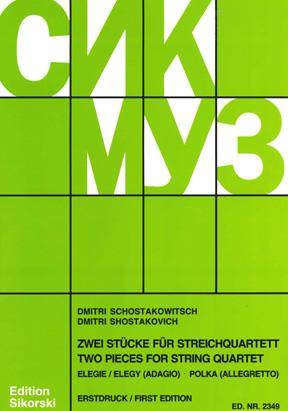 Two pieces for String Quartet: Elegy (Adagio) and Polka (Allegretto), as composed by Dmitri Shostakovich. Score and Parts.