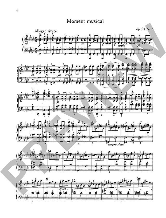 SCHOTT PIANO COLLECTION/SCHUBERT iz kategorije skladbe, sodi med odlične klavir.Moment musical F minor, op. 94/3 Moment Musical F minor, op. 94/5 Moment musical A-flat major, op. ...