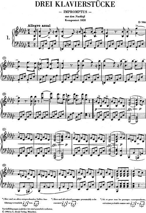 3 Klavierstücke - Impromptus - aus dem Nachlass D 946 (revidierte Ausgabe