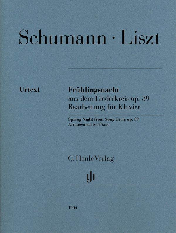 Frühlingsnacht (Pomladna noč) Roberta Schumanna je bila ena njegovih najbolj priljubljenih pesmi celo v 19. stoletju. Franz Liszt je zanjo ustvaril klavirski aranžma, ki v manj kot 70 taktih nastane kot prava koncertna skladba. Zahteva visoko vzdržljivost pianista, zlasti v njegovih trojnih akordih. Toda to ni oviralo njene široke priljubljenosti. Prva izdaja je izšla leta 1872, v času Lisztovega življenja pa je bila deležna številnih ponatisov. Leta 1895 je bil tudi ta del ponovno objavljen v novo gravirani izdaji. S svojimi obilnimi tehničnimi indikacijami, različnimi osijami in vključenostjo besedila pesmi nad glasbo, Lisztova ureditev postavlja najvišje zahteve do glasbenega graverja - izziv, s katerim se ta izdaja Henle Urtext veseli.