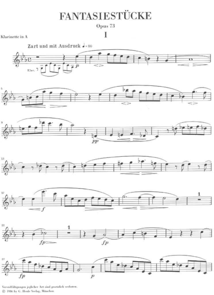 SCHUMANN R.:FANTASIE-STUCKE OP.73 CLARINET AND PIANO iz kategorije skladbe sodi med odlične klarinet.