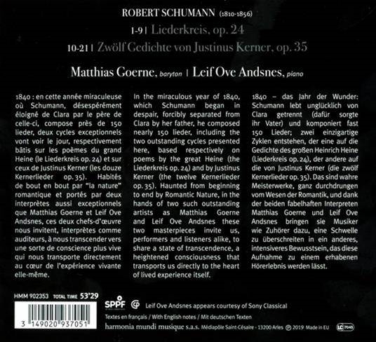 SCHUMANN:LIEDERKREIS OP.24/KERNERLIEDER/GOERNE