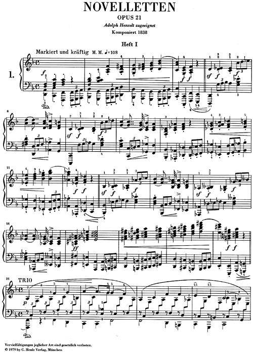 SCHUMANN:NOVELLETTEN OP.21 iz kategorije skladbe, sodi med odlične klavir.Novelete so nastale približno ob istem času kot Kinderszenen in imajo enako v glavnem nemirno razpoloženje ...