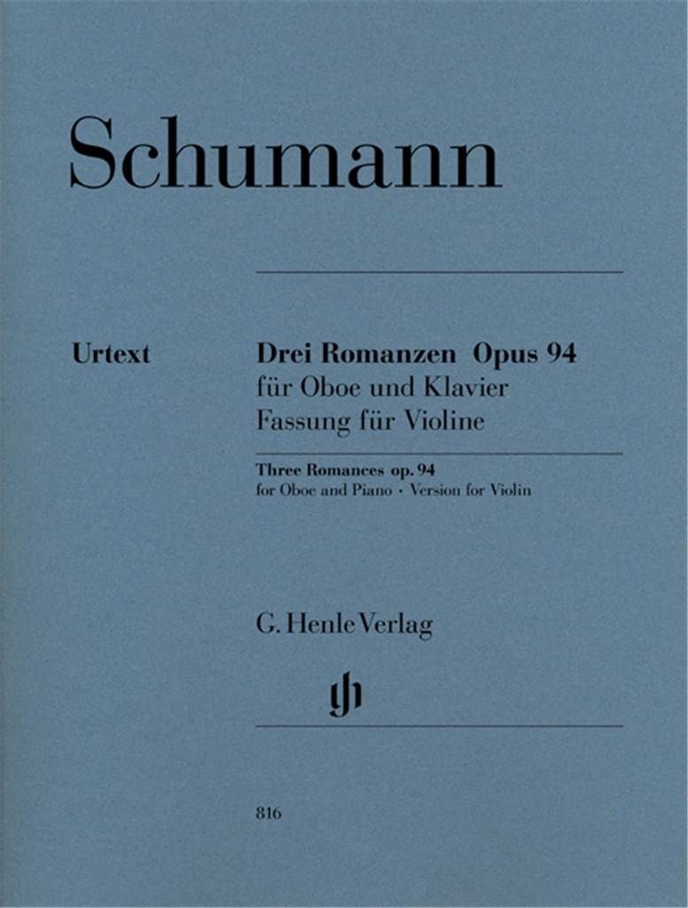 Leta 1849 je Schumann s komornimi glasbenimi deli obdaril tri pihala: klarinet s »Tri fantazijskimi komadi« op. 73, rog z "Adagio in Allegro" op. 70 in oboo s pričujočo »Tri romance« op. 94. Vendar so se takrat na trgu pojavile tudi »Tri romance« za oboo s solističnim delom za violino ali klarinet. Violinisti so vsekakor zelo veseli, da so založbe G. Henle sledile tej ideji alternativnega točkovanja. Rokopis, ki ga je Robert leta 1849 podaril svoji ženi Klari kot božično darilo, ni ohranjen. Vendar pa si je bilo mogoče ogledati osnutke avtogramov za našo izdajo Urtext, ki je pomagal odpraviti številne neskladnosti prve izdaje iz leta 1851.